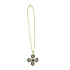 A signature Kenneth Jay Lane style, these gold-trim snail shell clip earrings are a beautiful jet black adorned with round rhinestones and a faux white pearl center. Clip-on backing for extra comfort.