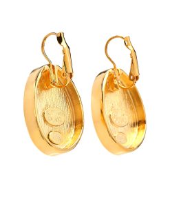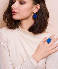These are polished gold earrings with blue enamel in a kidney shape, featuring a stylish euro-wire backing.