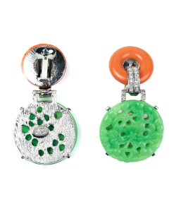 Kenneth Jay Lane Jewelry Coral And Carved Jade Circle Clip Earrings | Coral & Jade