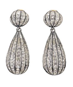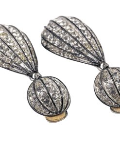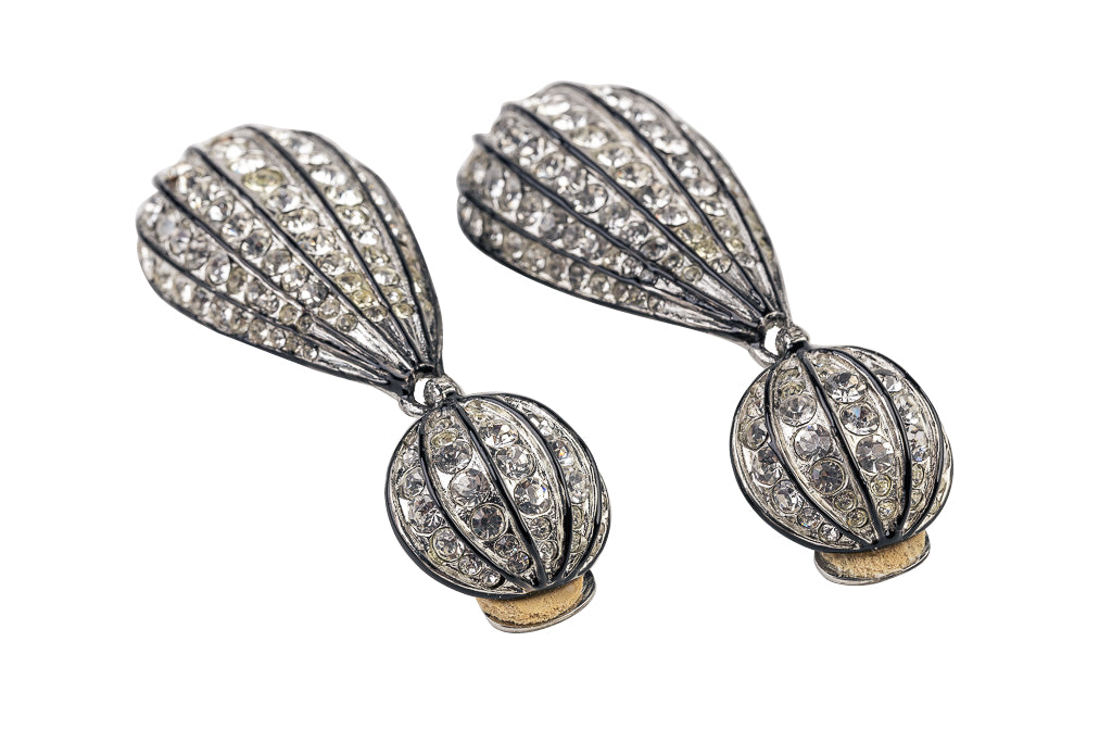 Rhodium-plated with enamel black lining, these sparkling glass crystal clip-on earrings will shimmer and shine with beauty when you pair them with your favorite Little Black Dress!