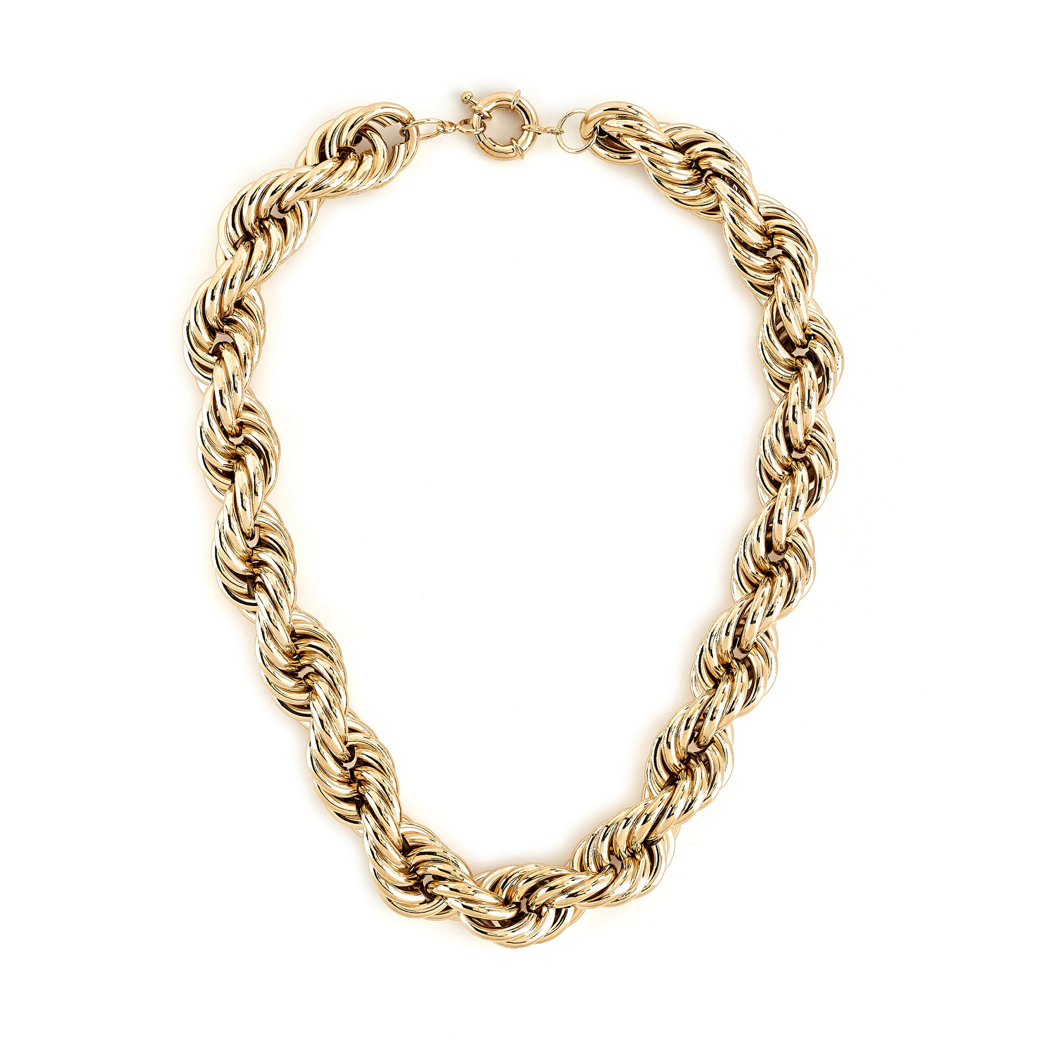 This Kenneth Jay Lane Gold Twist Chain Necklace puts a modern, elegant twist on the simple gold chain. Featuring cable wraps of polished gold, this necklace is certain to be the perfect piece for any jewelry lover.