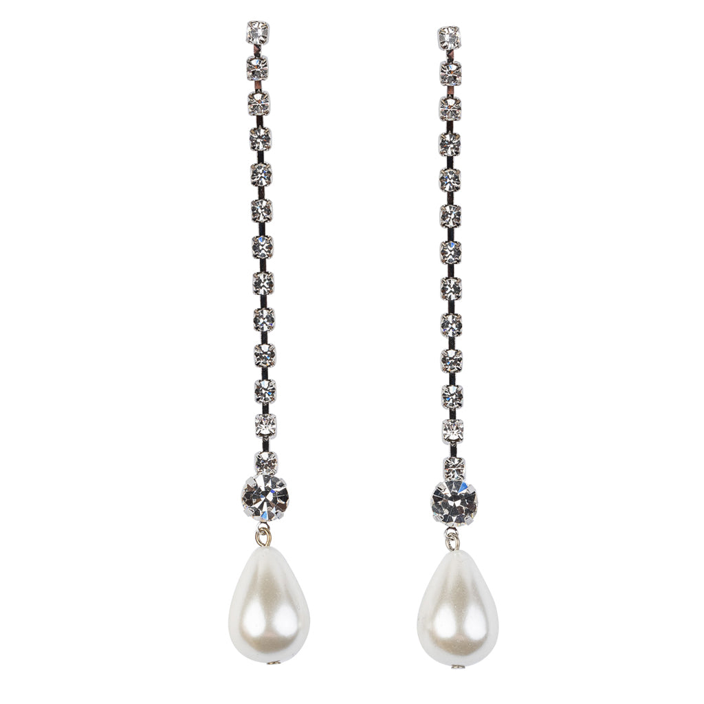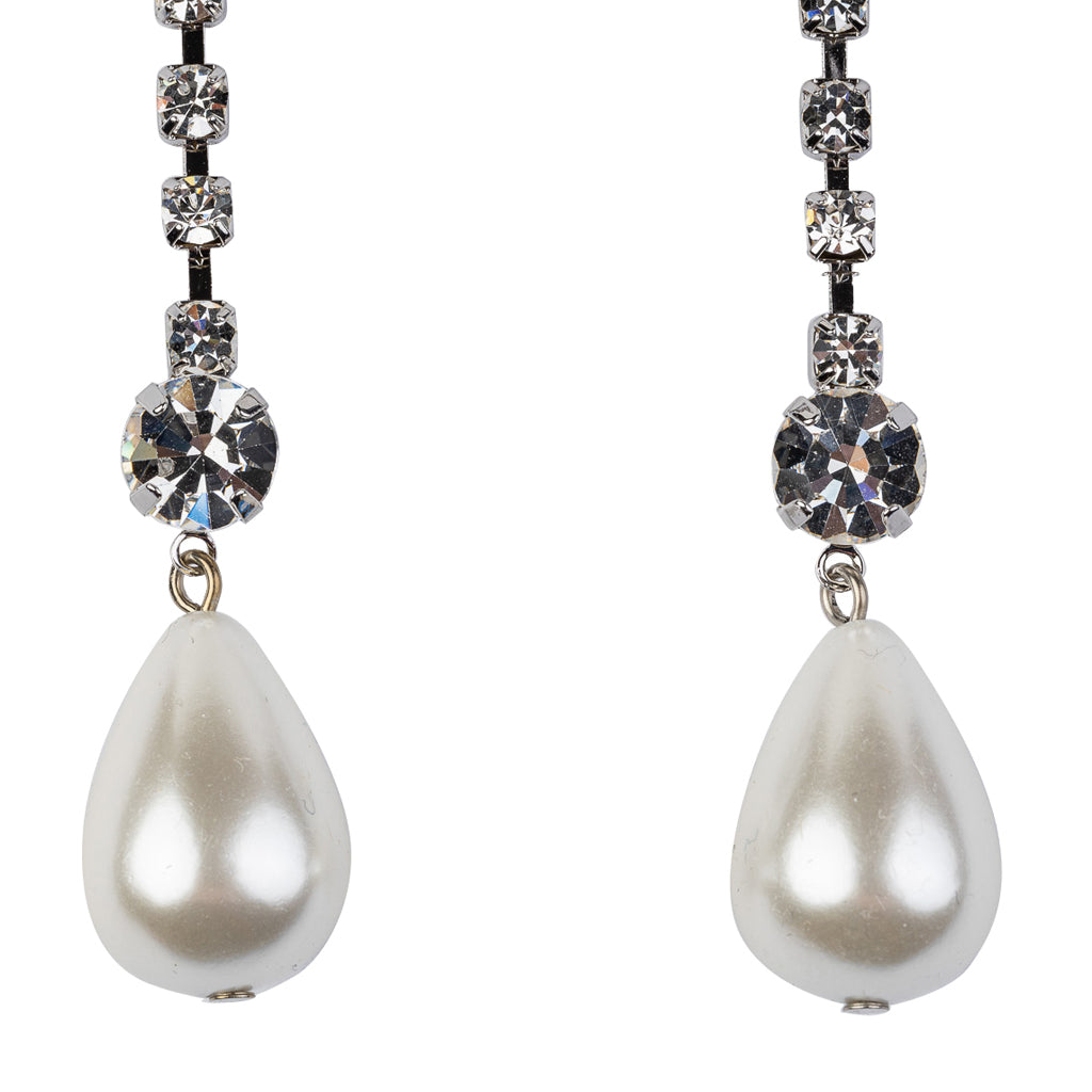 Kenneth Jay Lane Jewelry Pearl Teardrop Rhinestone Earrings | Silver & Rhinestone & Pearl