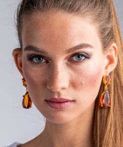 Shimmering topaz stones surrounded by gold exaggerate the vintage sophistication of these KJL original glass stone impeccable teardrop earrings.