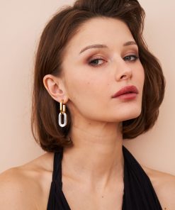 Modern and stylish, these double link drop earrings feature a gold top and silver bottom for a chic two-tone design.
