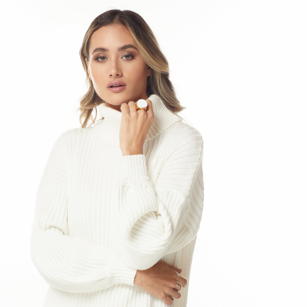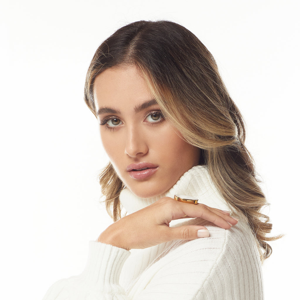 This polished gold and white enamel kidney shaped ring is timeless and perfect for any occasion.